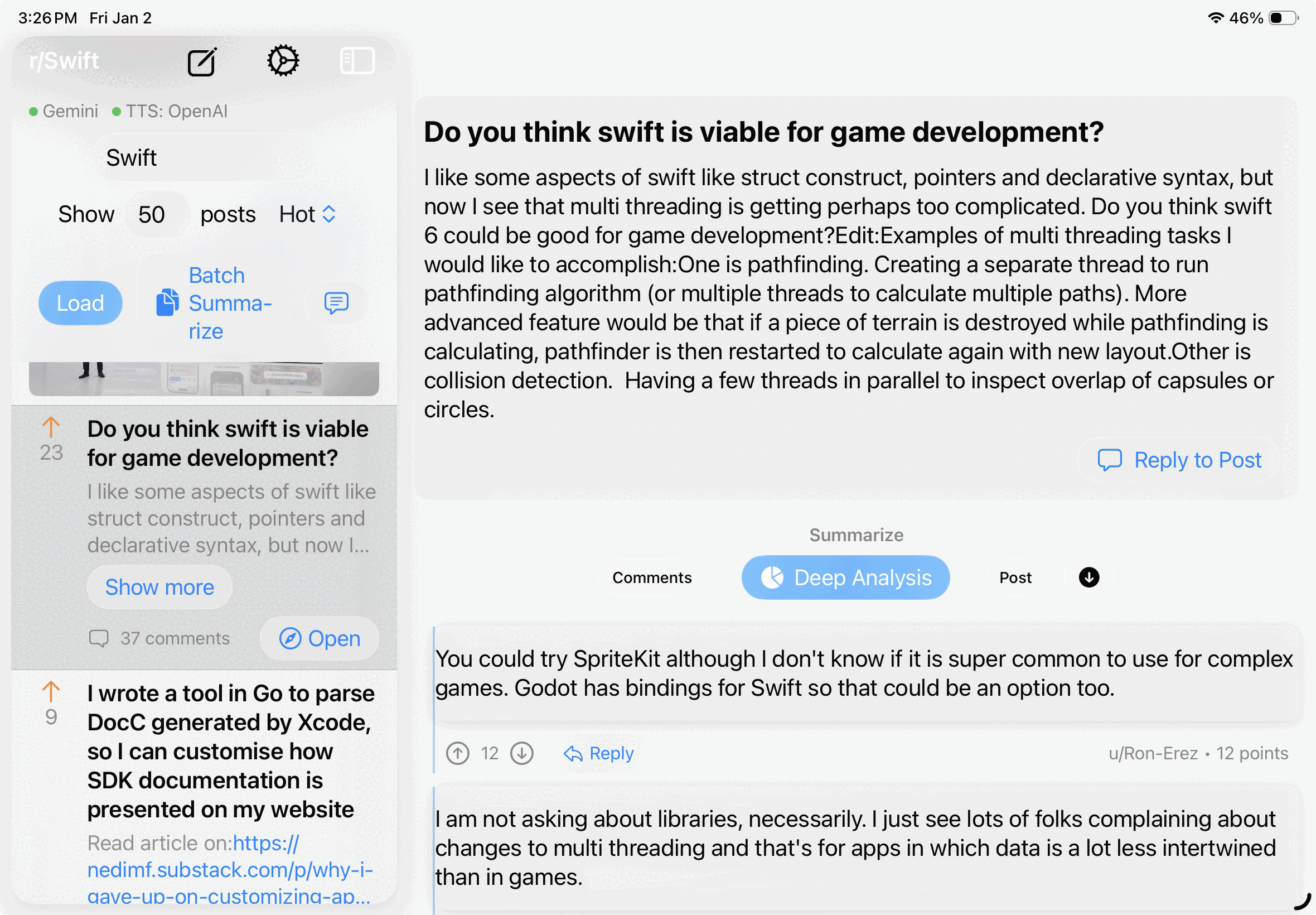 Browse Hot, New, Rising, and Top posts. Create new posts, Comment, Upvote and Downvote. The app summarizes posts and ALL comments of any Reddit thread. Uses your own Reddit credentials.